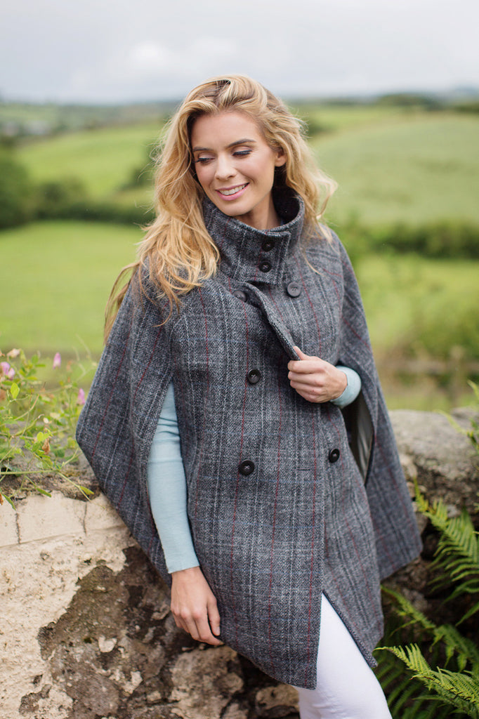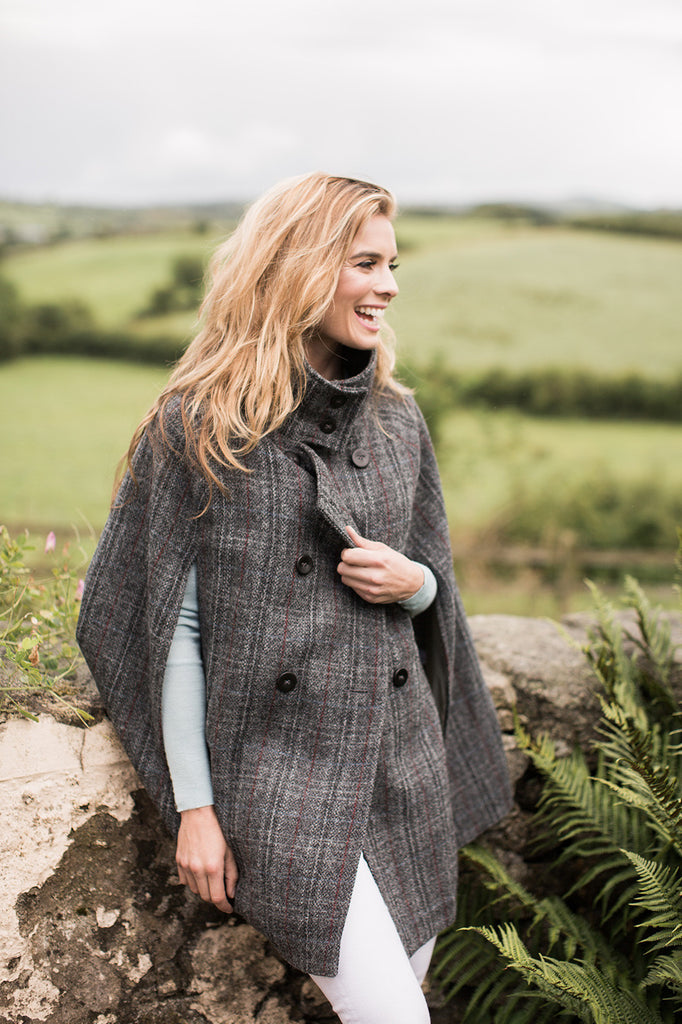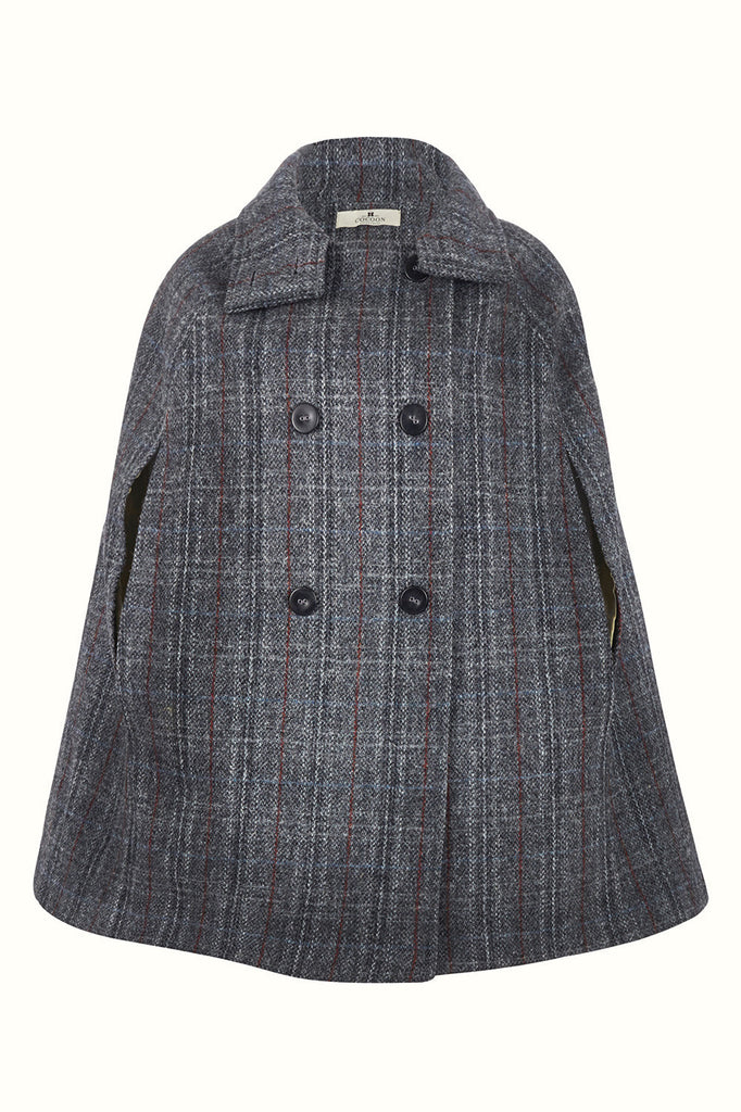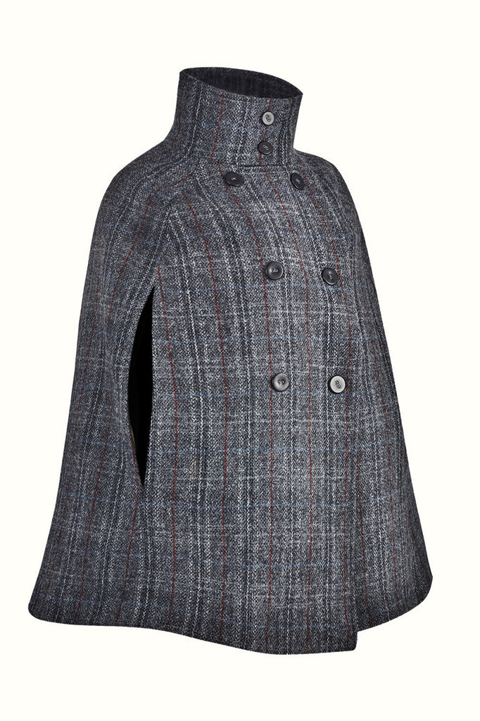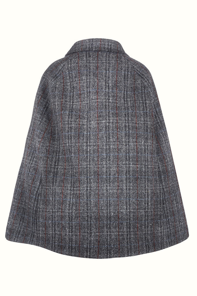 A glamorous replacement to your classic outerwear for Autumn/Winter, this cape is luxuriously crafted in a dark check from Harris Tweed; world renowned for it’s heritage, style and quality. Makes a fantastic layering piece that will become a Winter wardrobe staple. Balance the volume by styling it with tailored pants.